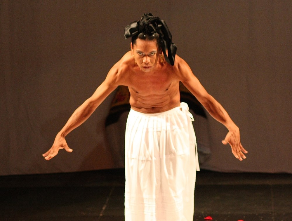 Poco después, Lukas regresó a vivir a su pueblo natal en Tehuantepec. Cuando a principios de 2012 lancé la convocatoria para el IV Coloquio Internacional sobre las Artes Escénicas, me expresó su interés en presentar su nueva pieza en la Universidad Veracruzana: Réquiem para un alcaraván. El 19 de septiembre, estudiantes y maestros de las facultades de artes atestiguamos la “danza performativa” que, en palabras del creador aborda los “ritos de paso femeninos” de la cultura zapoteca, o binni zaa´. La obra era notable por su manera de abordar frontalmente la muxeidad del sujeto liminal que se desplaza entre lo masculino y lo femenino mediante acciones que van de la danza erótica del pájaro alcaraván a la plegaria católica convertida en “una petición de desagravio por los putos del mundo” (citado en Prieto Stambaugh 2014, p. 43).