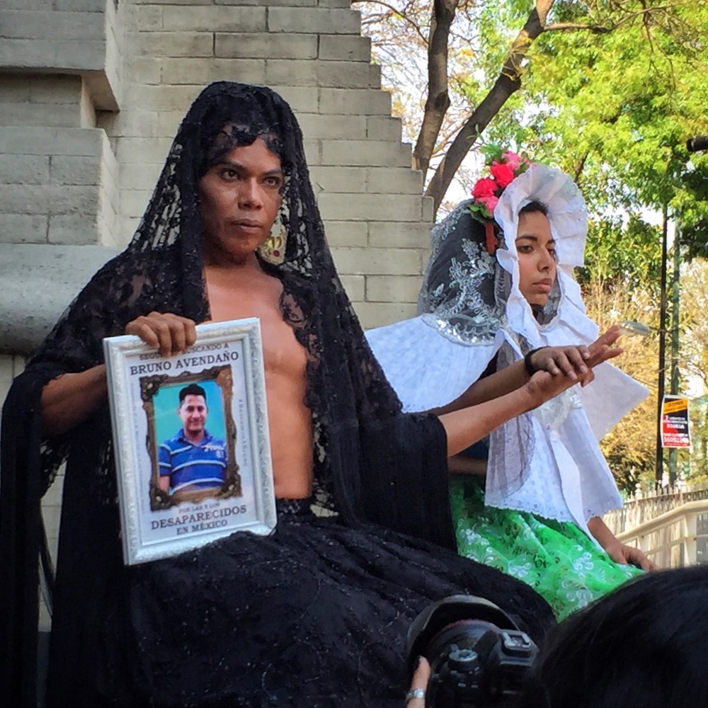 Según nos expuso Lukas, su accionar tiene una serie de con-secuencias, que pueden entenderse como “fotogramas” que se van sucediendo de una intervención a otra, vinculando, por ejemplo, sus juegos de la infancia con “el instinto de supervivencia escénica” que lo guía en la actualidad. Al reflexionar sobre la precariedad de sus acciones frente a instancias del poder, Lukas advirtió que “la performatividad pierde vigencia”. La eficacia de una acción política se va diluyendo en la medida en que “el poder evalúa y se da cuenta de que ya no tiene efecto”. De allí la necesidad de buscar nuevas estrategias que incluyen el “acto de desesperación” de su más reciente video que Lukas solicitó se proyectara durante la mesa de diálogo. Así lo escuchamos enunciar un categórico “yo acuso” a las instancias del poder que lo someten a su “laberinto procesual, por mi fenotipo prieto, por mi tradición campesina, por mi indianidad, por mi identidad muxe homosexual, por mi origen oaxaquita…”. Después de la proyección, nos dijo que ésta es la primera vez que siente la necesidad de hacer una declaratoria ante las instituciones sobre su disidencia sexual. Su intención es evidenciar cómo el racismo, el clasismo y la homofobia van de la mano, por lo cual para la autoridad “no soy ciudadano como el resto de los mexicanos”.