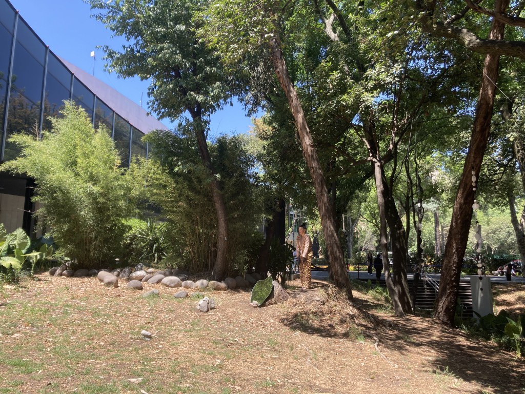 Es casi medio día en la Ciudad de México y hace bastante calor para ser 6 de abril. El jardín del Museo de Arte Moderno, donde nos encontramos para presenciar una performance de inSURrecciones, un ciclo sobre performatividades decoloniales comisariado por Gabriel Yépez, es un espacio refrescante a pesar de los estragos causados por la extendida sequía que experimenta esta zona del país.