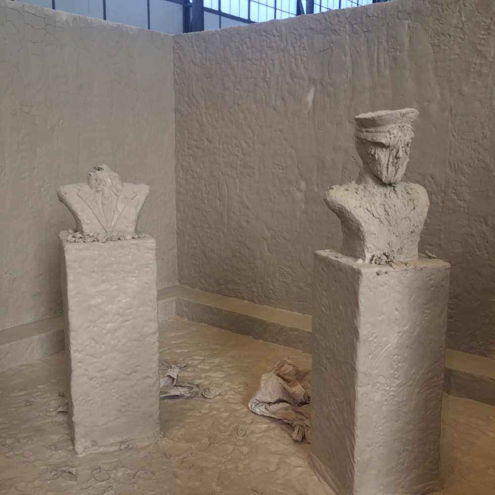 Utilizando bustos que ha esculpido en arcilla, que mantiene húmeda para que sea maleable durante la performance, la artista realiza tres acciones consecutivas que concluyen en la demolición del caudillo. Es así que la imagen del poder se convierte en un dispositivo de acción in situ, que no representa la historia, pero sí pregunta ¿cómo me pesa la historia? y ¿cómo puedo desafiarla?
