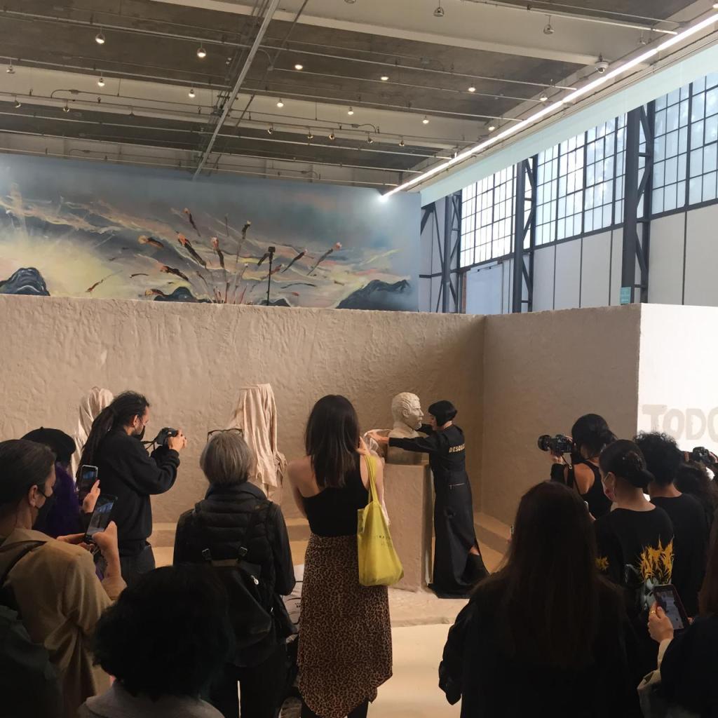 Desafiando al Coloso: Tres Actos, pertenece a la serie «Afrentas» en las que la artista Déborah Castillo, escenifica su resistencia a la figura monumentalizada del caudillo para cuestionar las estructuras febriles de la autoridad que históricamente han ocupado el poder en América Latina.