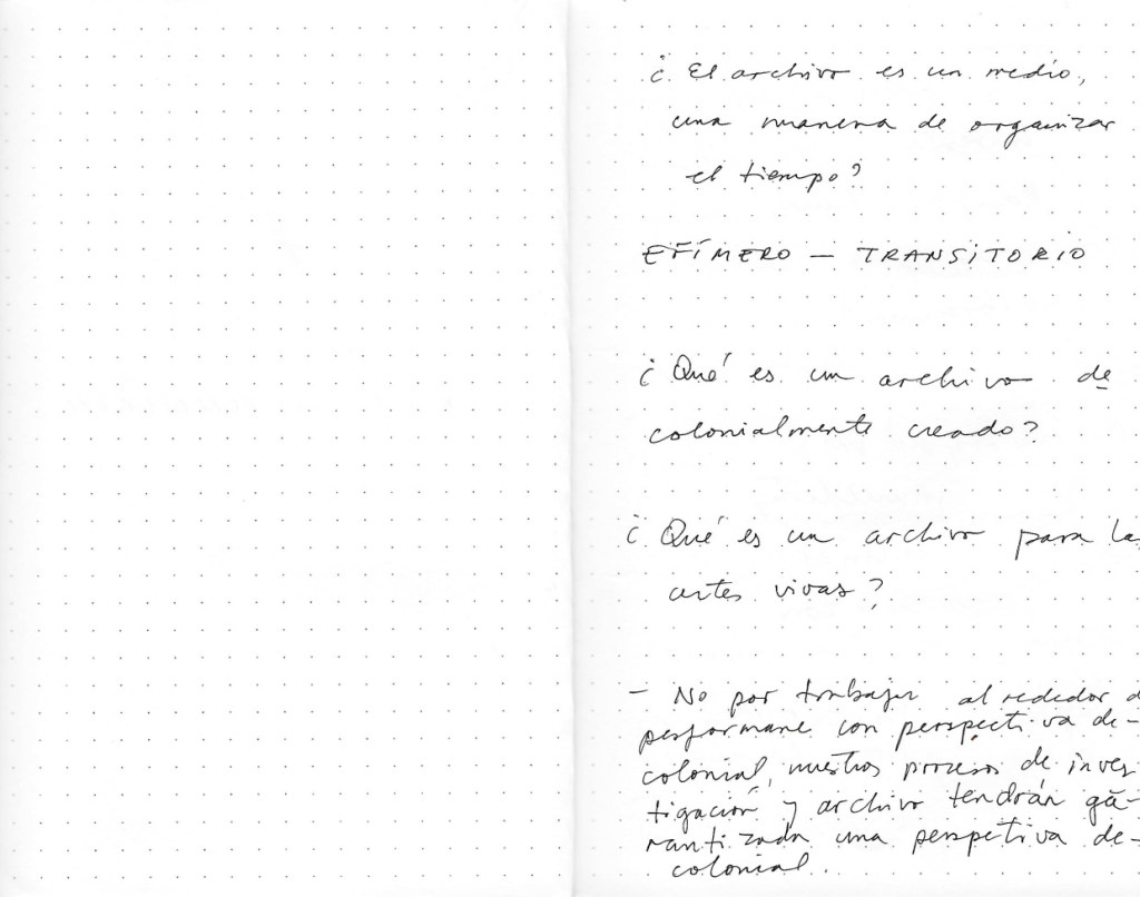 Tanto los Archivos Expuestos como las performances presentadas en el Museo de Arte Moderno de la Ciudad de México, estimularon la configuración de un espacio íntimo y vital alrededor de cuestiones tales como ¿qué es un archivo decolonialmente creado? así como ¿cuán decoloniales son los procedimientos de análisis y documentación que normalmente se utilizan para reflexionar y archivar propuestas performativas? o ¿qué herramientas y estrategias serían las más pertinentes para formular prácticas de resistencia crítica y creativa para enfrentar los singulares desafíos de un territorio complejo y diverso como Latinoamérca?